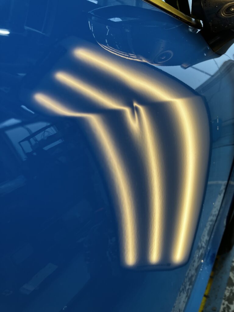 ドアプレスラインのヘコミ 2026年2月7日 最終更新日時 : 2026年2月7日 カーデントShogo ドアにできたヘコミを修理しました。 塗膜がつぶれくっきりと線が入っている鋭いヘコミです。 線キズは残りましたがなんとか形になり目立たなくなりました。 キズがあるヘコミは難易度が上がるので冬でも汗だくになります。 \ 最新情報をチェック /