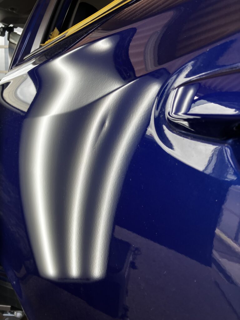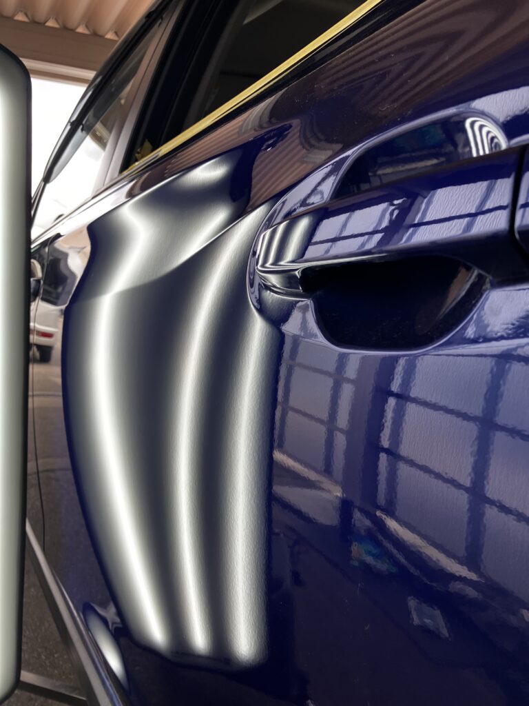 ドアのキズ有りヘコミ修理 2026年3月19日 最終更新日時 : 2026年3月19日 カーデントShogo 左リヤドアのヘコミをデントリペアで直しました。キズは磨いて目立たなくなりました。 アウトサイドハンドル付近のうねるラインを作り直すのに苦労しました。 デントリペアはツールの先端に確実に力を掛けられるか、適切な工具で押せるかで仕上がりが変わります。 また、塗装の状態、ヘコミの出来た場所、深さ、鋭さ、形状も仕上がりに影響します。 デントリペアでは厳しいヘコミも多々ありますが、1台1台確実に綺麗に直すために最善を尽くしております。 \ 最新情報をチェック /